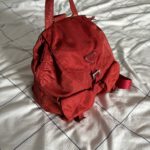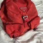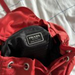 Condition: Vintage / Used. (Note: Visible fading/discoloration to orange tones on the nylon, which is typical for vintage red Prada items).